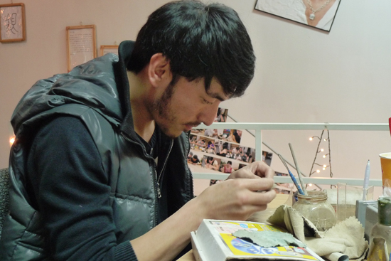 我们来到一间格子店门口,在格子店的招牌的上面还有一个招牌,上面写着“DIY银饰”,我心中一愣,念道“不会吧,这太不专业了吧…”。走进格子店,从侧面的楼梯往上走,开始觉得有点意思,因为墙面上贴满了各种手工银饰的照片和别人在这里制作的过程,看得我很是心动!一边上楼梯就一边听见上面有几个人在聊天,这种很融洽的气氛让我觉得这一定是个有趣的地方,尤其是其中有一把沉稳柔和的男中音。