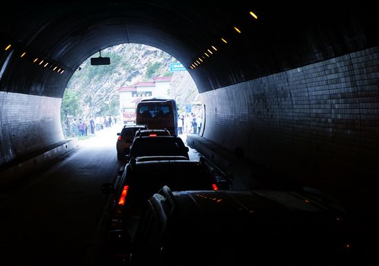什么!?单边放行!?从来就行走在畅通道路上的我头一回遇到这么无语的事情,你不知道前面有多少车等着过去,也不知道对面有多少车正准备过来,你更不知道这样的情况要持续多久,没有人可以问,问了也没人知道,你就像玩过山车,跑到最高点突然停电!停下来了!停在一个前后不着边、叫天天不应叫地地不灵的地方!最关键是这个隧道里竟然没有信号!!!