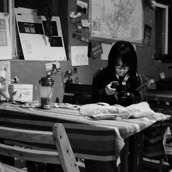 我走过去,坐下,瞎聊开始了…聊了什么我不太记得了,大概就是“你是干什么的啊”“怎么还带那么大本书啊”“看看你拍的照片啊”等等微波炉式话题。事实证明,这只微波炉还蛮好用,一下就熟了。