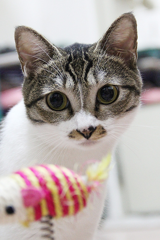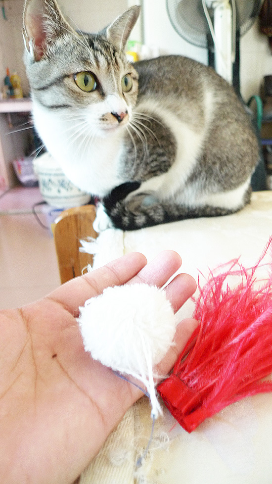 对啦 你跟小叶子可以给小猫买一些专门的玩具吖 要不你们的东西都变成它们的玩具了