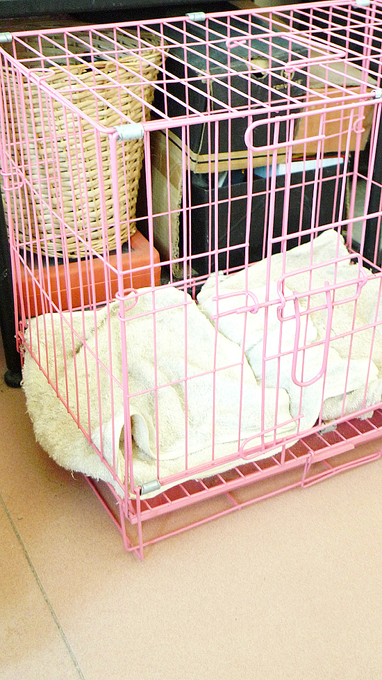 在关小米睡觉的初期,我是把她放在笼子里的,没有把她锁在厨房,更没有用小桌挡在门口,但是作为一只小猫咪,我觉得一只笼子已经足以让她不上床尿尿,乖乖睡觉了。