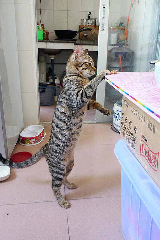当时觉得只要关上厨房门就可以把这小家伙乖乖关在里面了,没想到第二天一起来,小咪竟然在我身上走来走去讨早餐!我先是以为她又尿床了于是被惊醒,接着才反应过来:这家伙怎么出来的!?