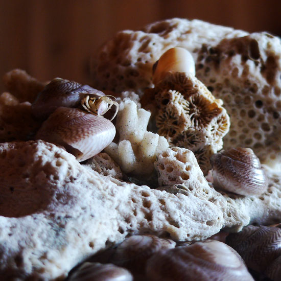下午在海边我收获了不少“宝贝”,意想不到的是,这个海滩上竟然有不少珊瑚碎片,这一小截树枝状的白色骨骼是我最喜欢的。小邱睡下后,我打开手电筒,再拿白花花的卷纸当反光板,兴致勃勃地给它们拍起照来。不亦乐乎!