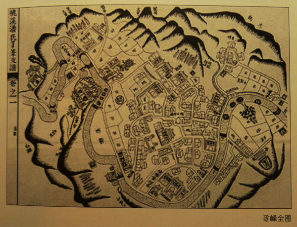 这是《设计的开始》中王澍所引用的《豸峰全图》,是清朝时婺源豸峰桃溪潘氏所制。之前我在网上找了很久,也在各处发消息问人,可是始终没有找到这张地图的清晰版本,无法看到更多细节的处理。我想这类地图在网上应该是找不到吧,它们应该安安静静地躺在博物馆的玻璃箱或者藏书房里。如果有机会,我很想看一下这张美妙的古地图。