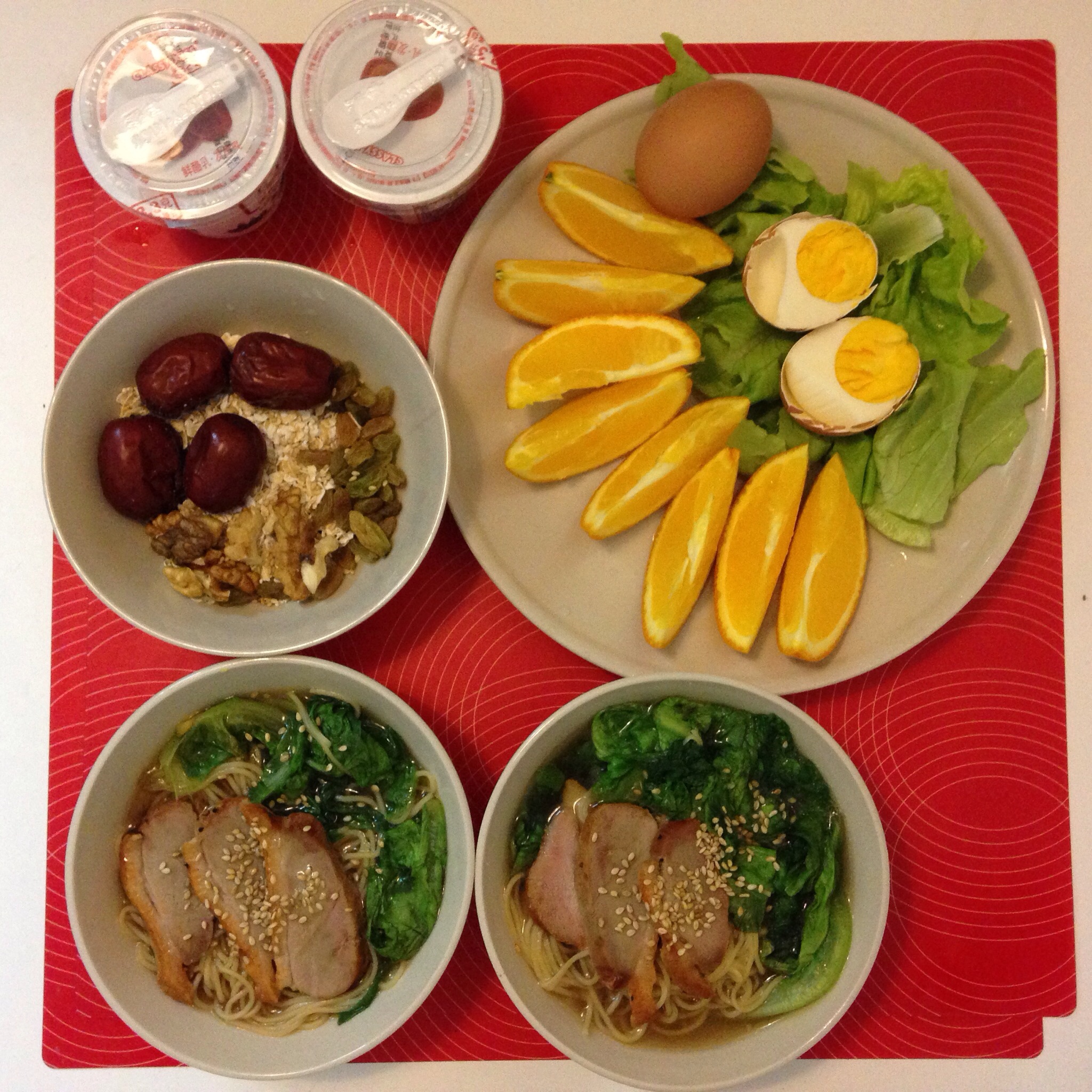 是日早餐!平时我出门上班才起床的小叶,昨晚扬言要做一顿丰盛的早餐,结果今天早上一起床就看见这一桌~刚才我走在上班路上仿佛身上披了一件彩色的盔甲^_^