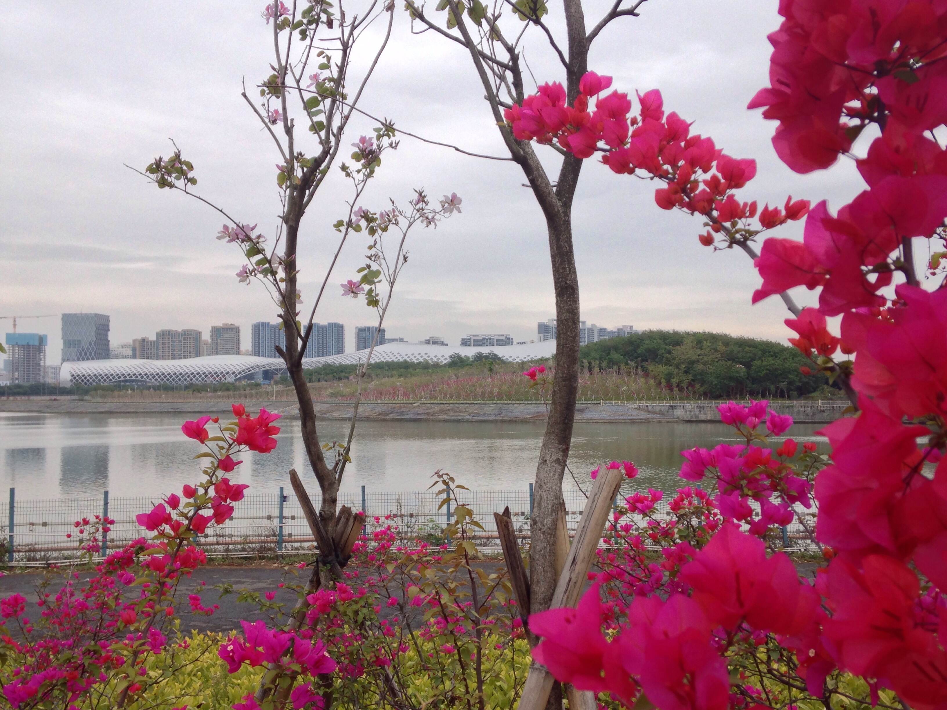 一开始想沿着海边跑,后来才发现好像跑错了路线,于是,兜兜转转,绕了大半圈才终于跑到海边。这个时候我已经跑了快四公里了。虽然跑错了路,但也是有收获的,今天跑了一些我之前从来没有去过的地方。从别的角度看深圳湾体育馆和保利巨蛋,感觉还是蛮不一样的。