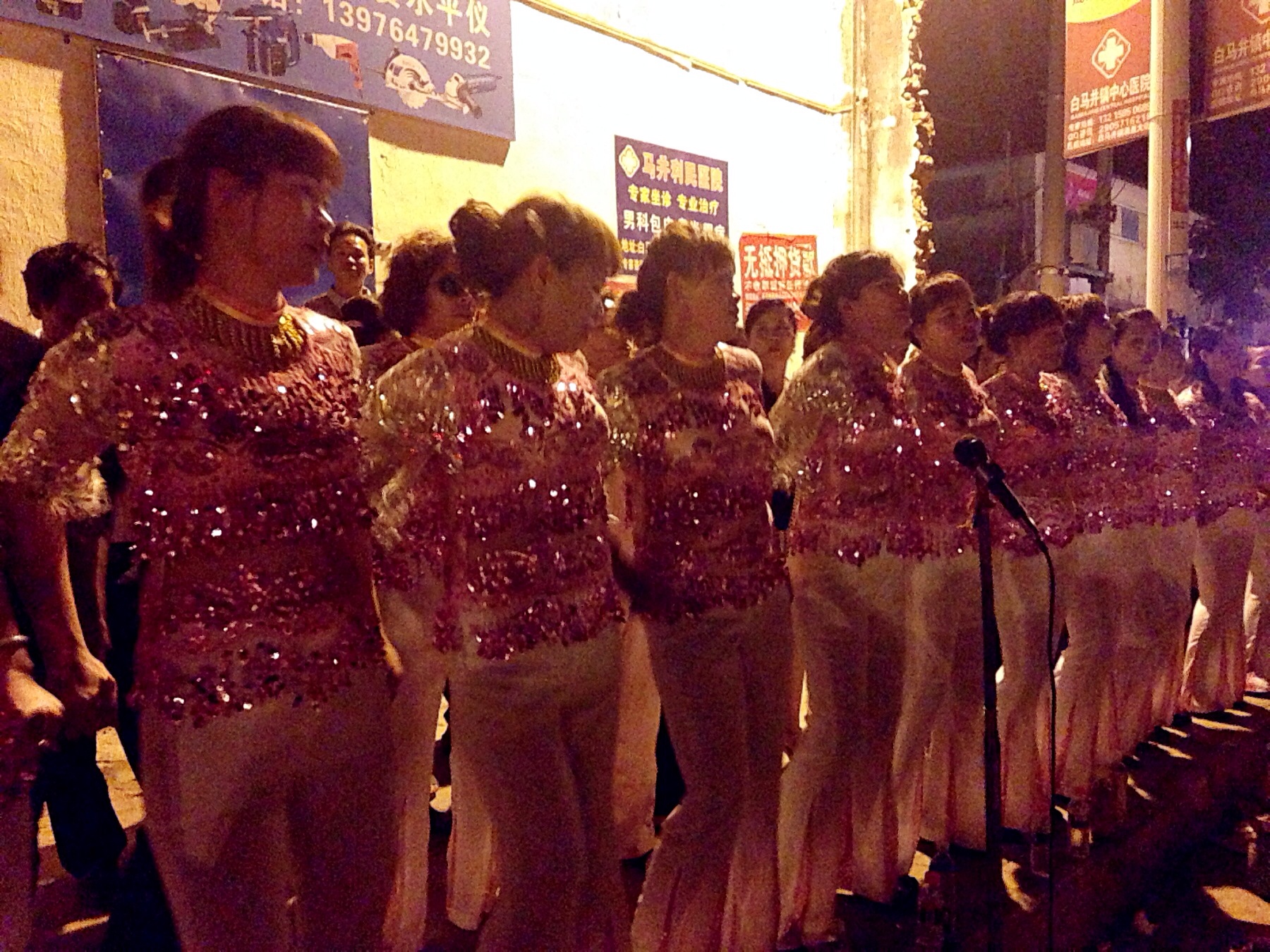 这是一种非常古老的社交活动,类似于刘三姐山歌对唱,由男女两组牵手列队舞蹈对歌,互相给对方出难题,各自还有军师商量策略,每晚九点十点就会聚集在街上,自发地形成一个个舞台,一直唱到夜里两三点…每天如此循环。