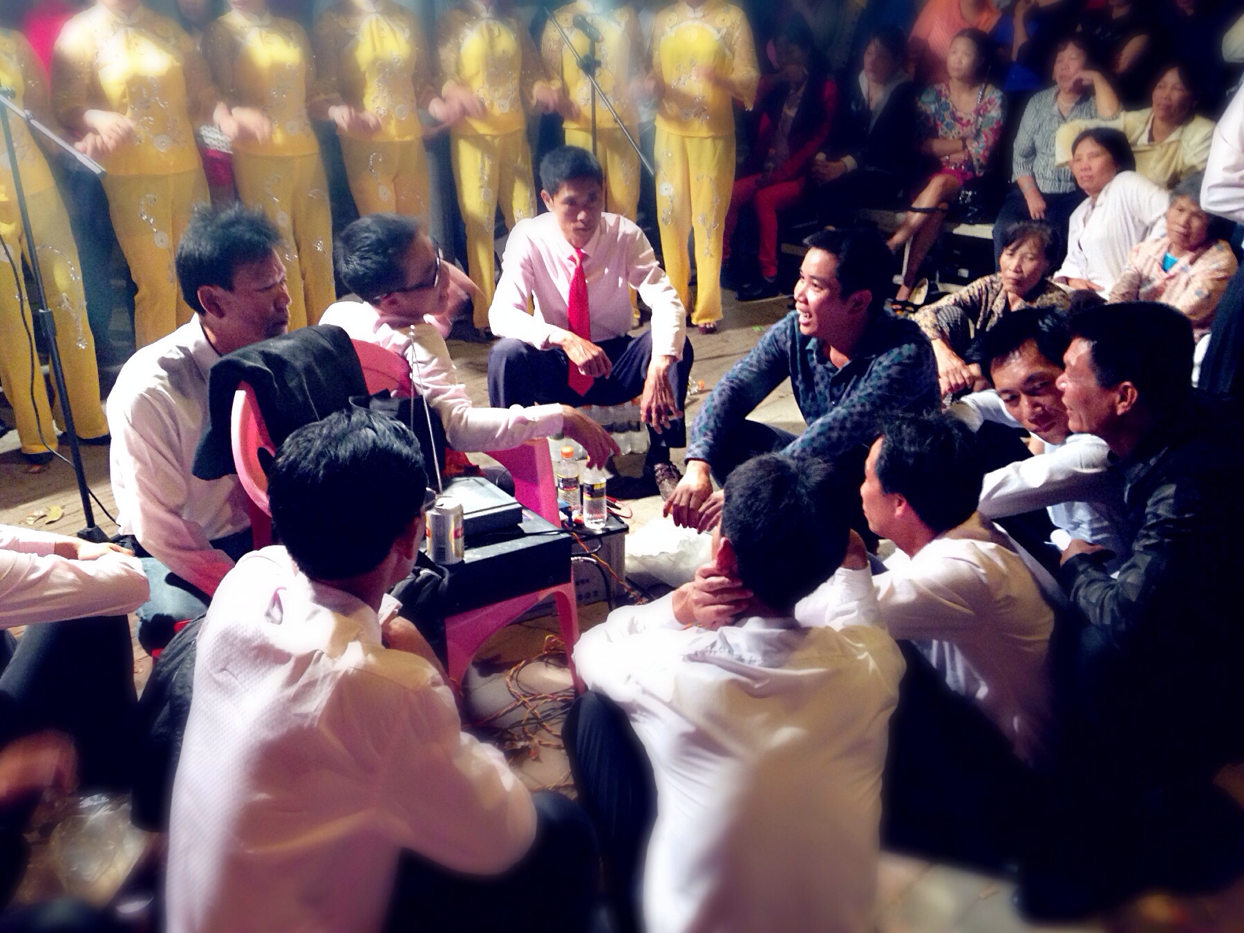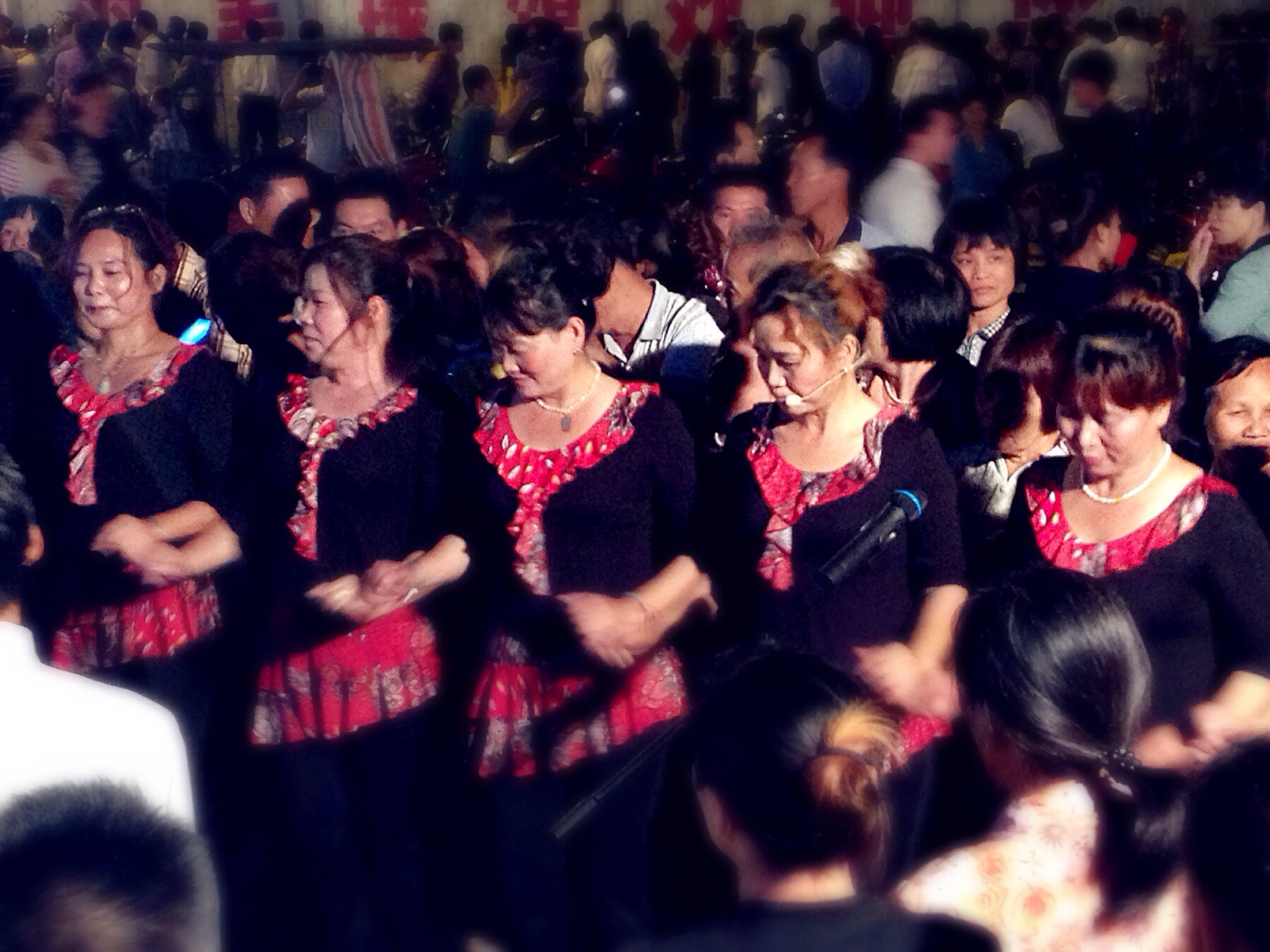 最后一个晚上,大人们在楼下引酒高歌,我和小叶疲惫得在楼上休息,直到十点多,火热渐渐褪去,我们才下楼。我们打算到街上散散步,正好碰到海南的大姑婆(我也不太清楚备份是不是这么叫,但应该没错吧)也出去,她问我们想不想看儋州调声,我们早有听闻,于是欣快答应,三个人就这么慢悠悠地走到街上,去看儋州的特色活动——调声(diao4sheng1)