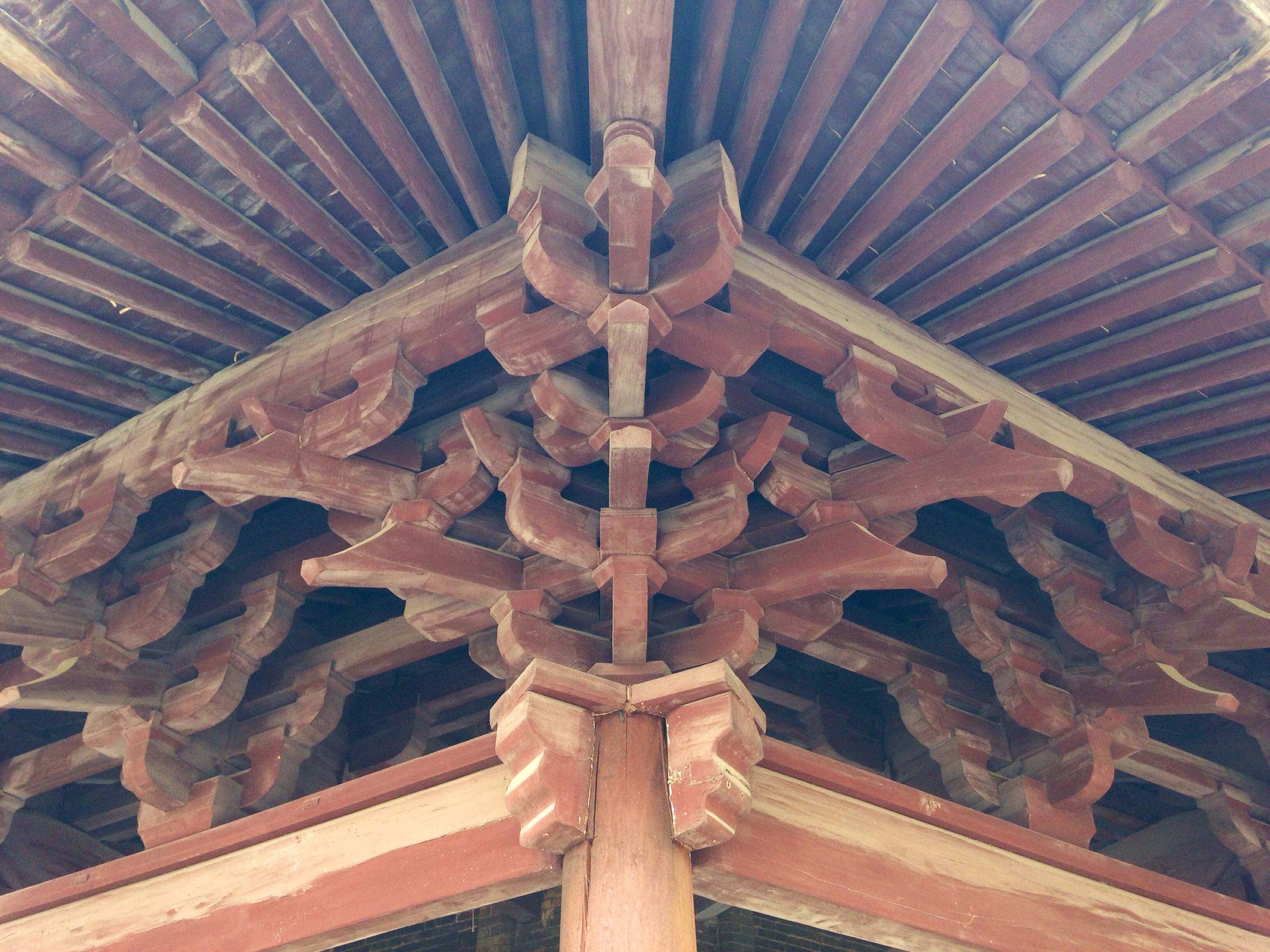 精巧的斗拱…但是说实话,这塔不仅从上到下层层错位,而且每一层的六边形都不是正六边…好不爽…真算不上什么建筑精品。