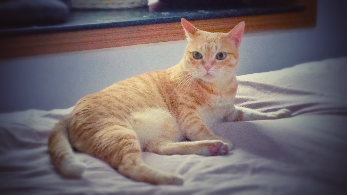 今天小柒第一次躺在家里的床上,她的四个“姐姐”对她可好奇了,分别轮流过来看、过来闻。初次见面,场面还算有趣。