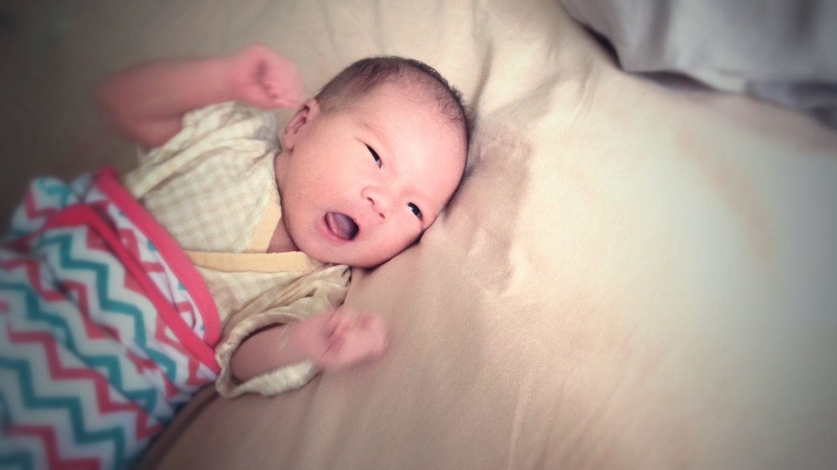 小家伙今天倒是不吵不闹,不知道是不是知道回家了。一整天都没怎么闹,吃饱就睡,睡醒就自己东看看西看看。好不容易才抓拍到一张这么生动的表情。