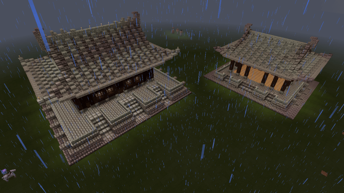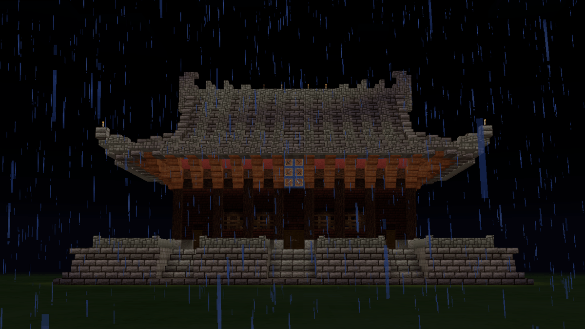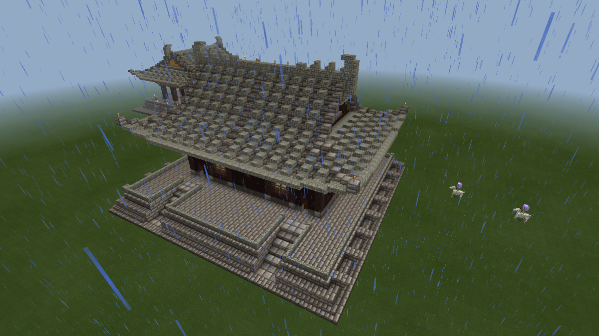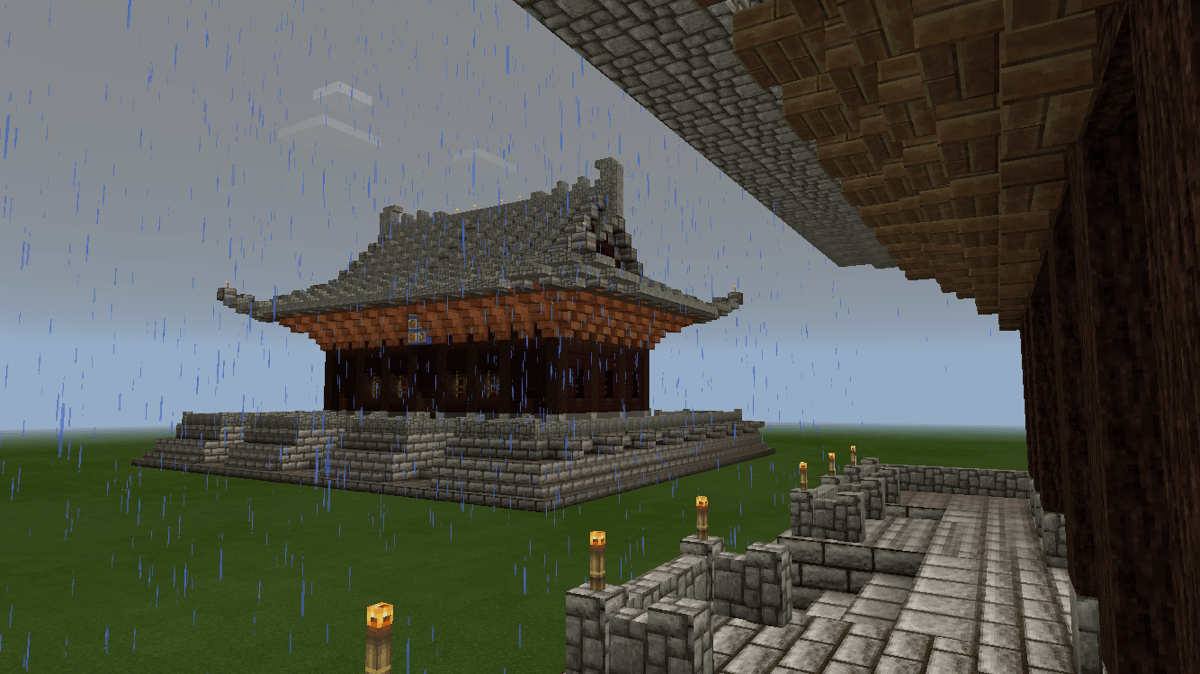 This is a practice of Chinese ancient building in Minecraft pe for iOS. This building has an irimoya-zukuri construction on top.