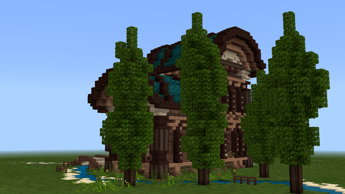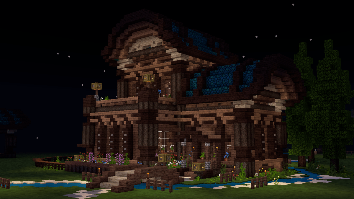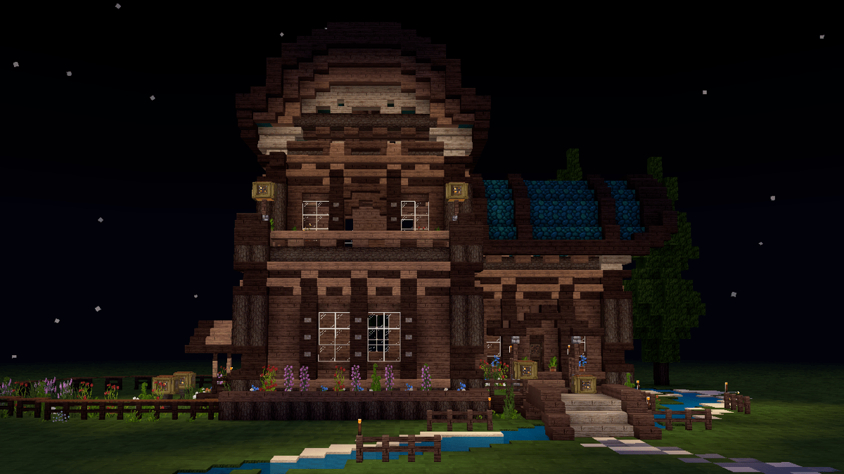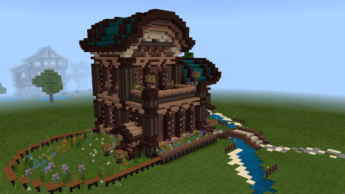 然后就是墙面、花园和树木的制作,以及反复修改细节了。中间过程来回修改了多次,没截图,直接跳到成品图吧!