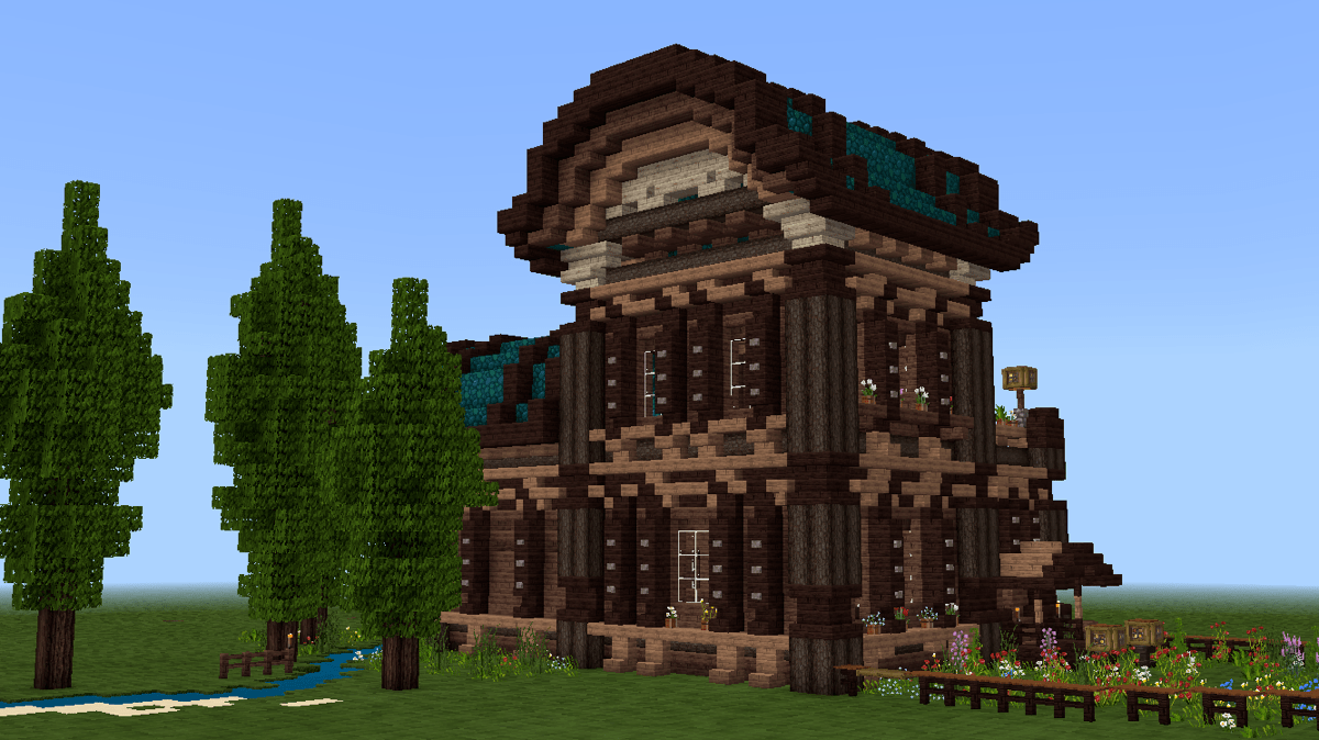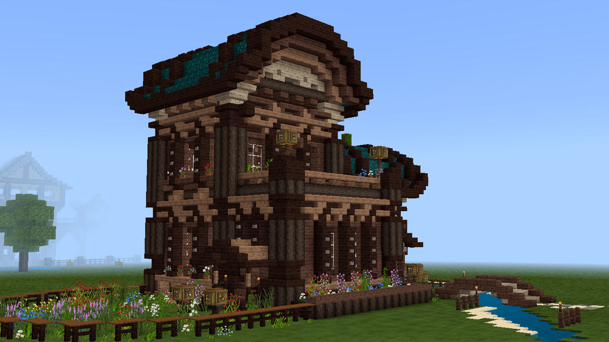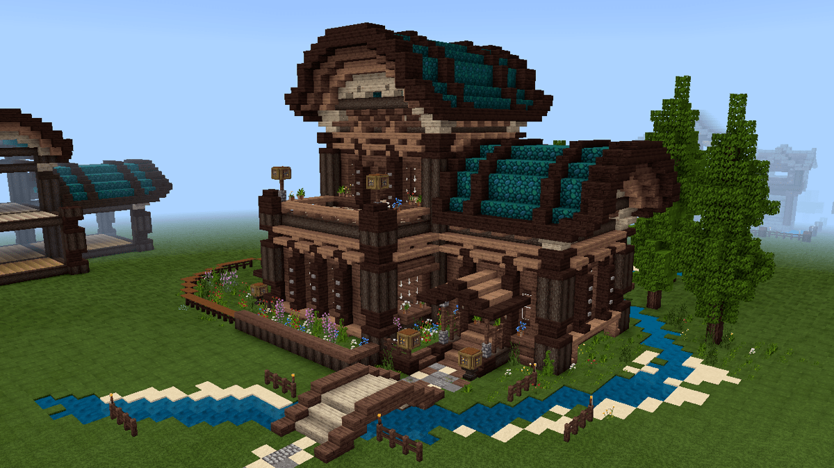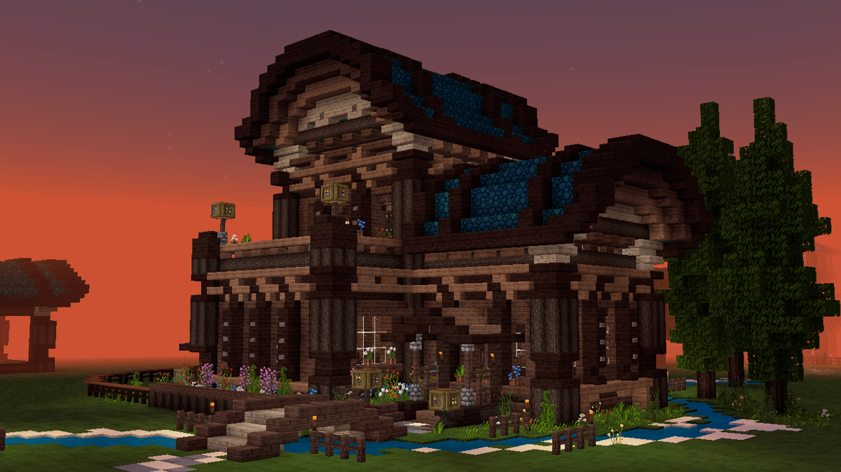 然后就是墙面、花园和树木的制作,以及反复修改细节了。中间过程来回修改了多次,没截图,直接跳到成品图吧!