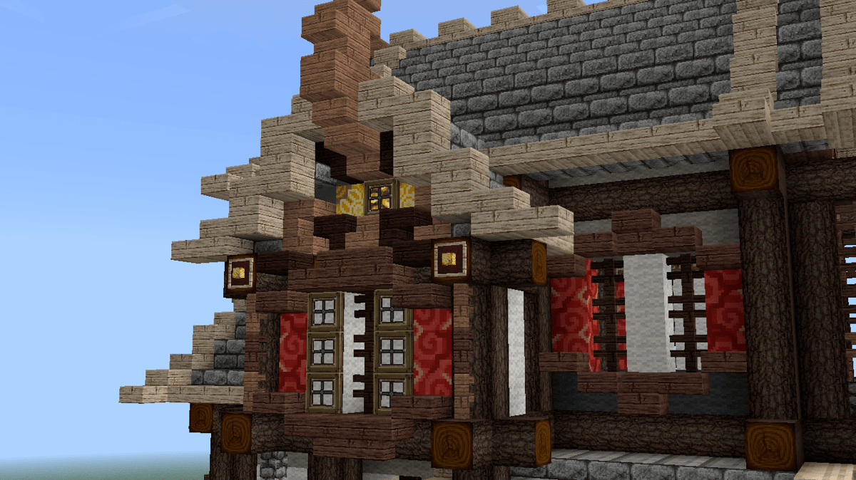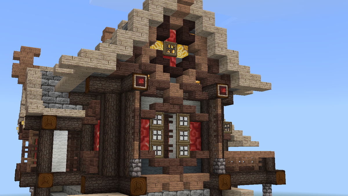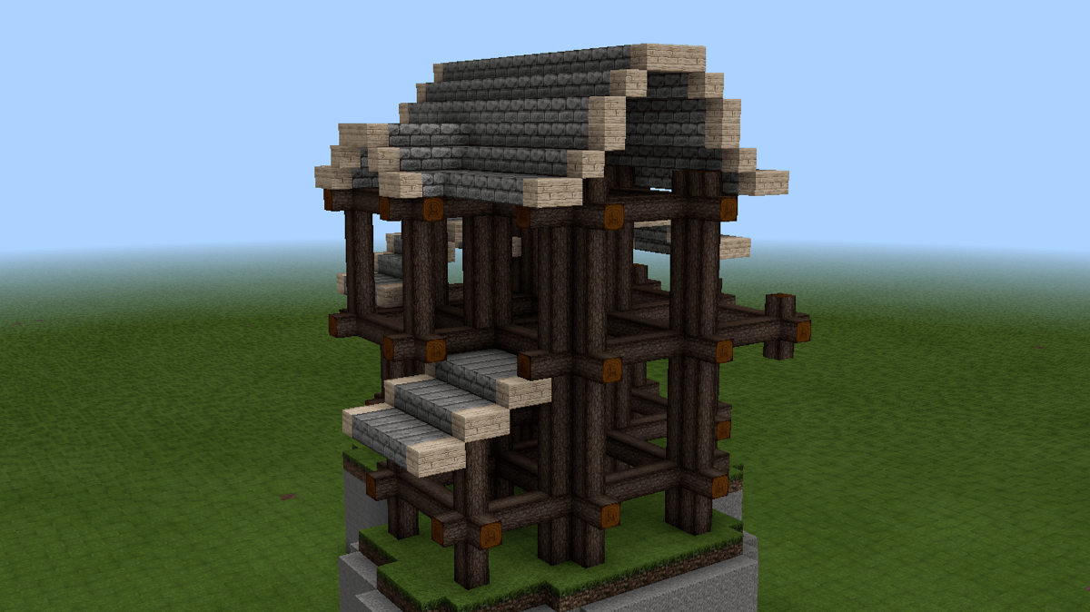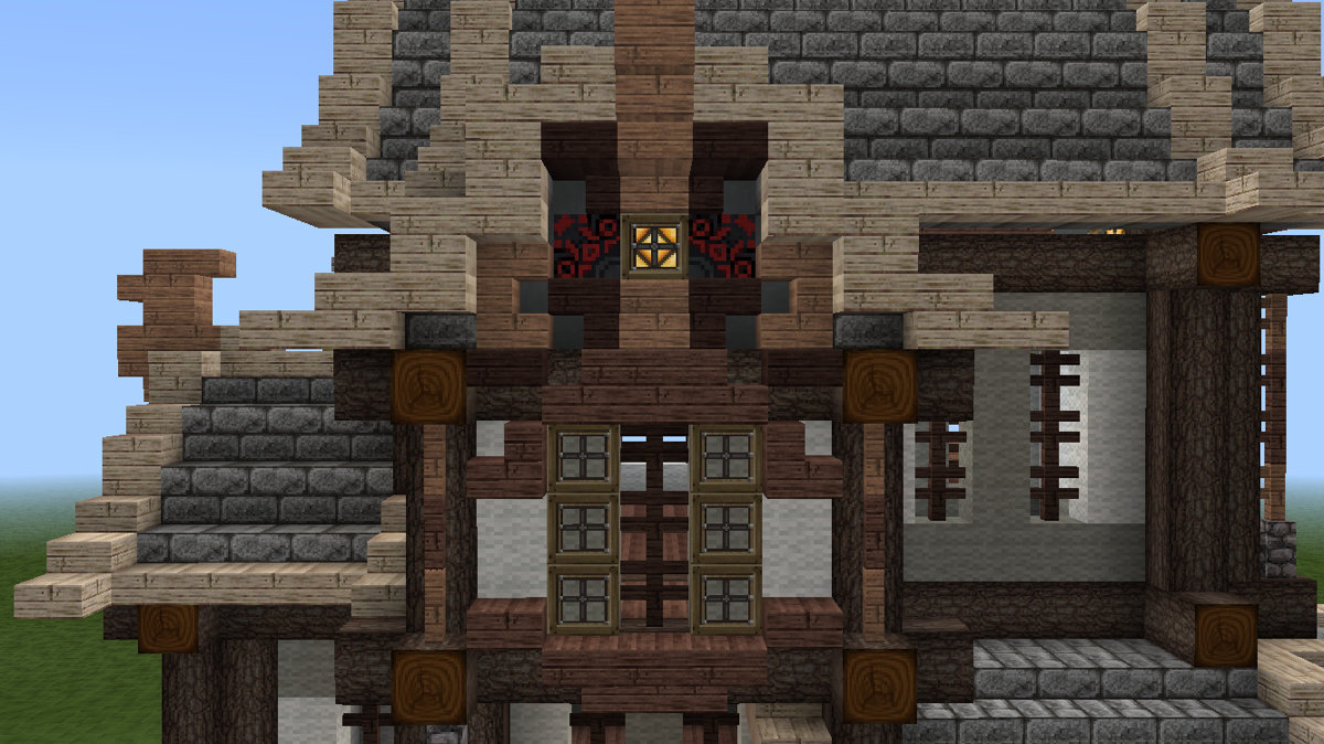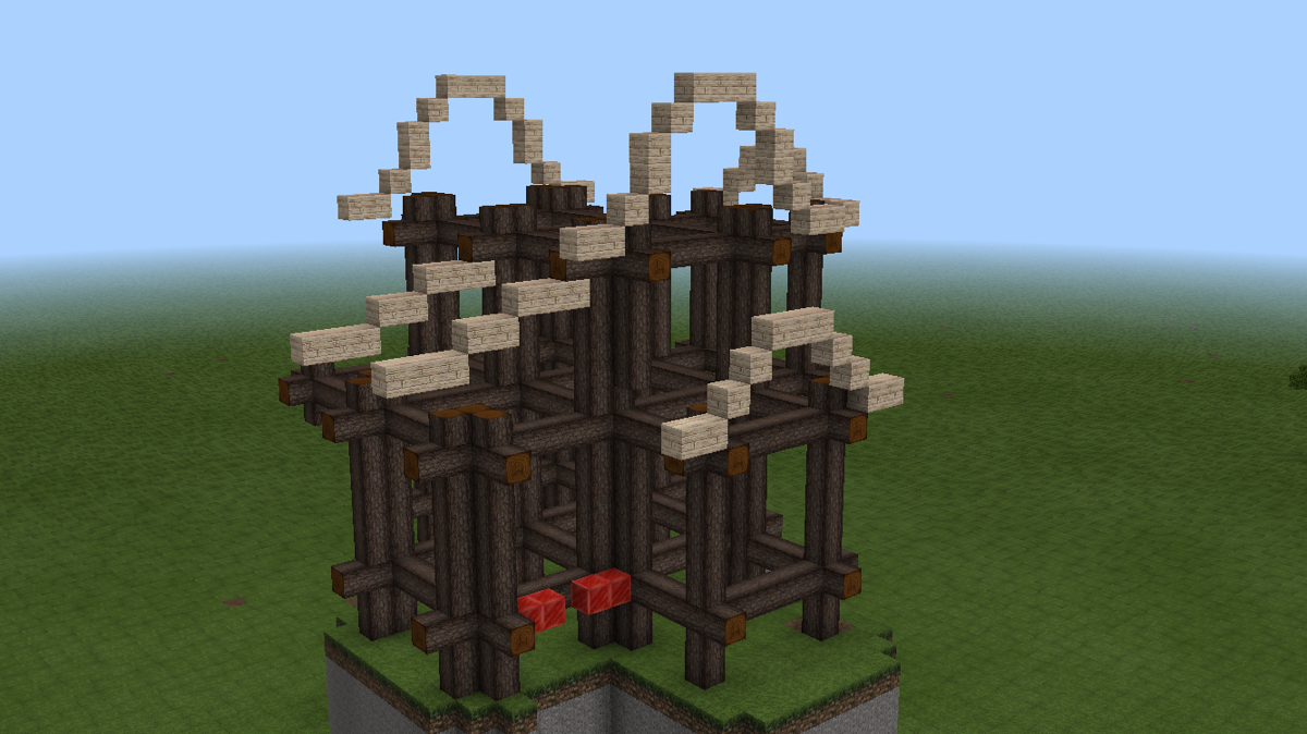 这时候,可以开始做山花了。山花的细节在后续的建造中修改了许多版,这个主要看个人的喜好与控制能力。