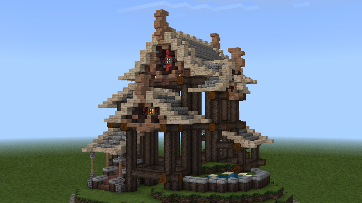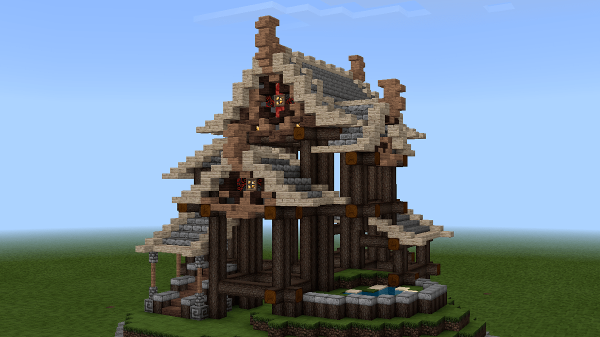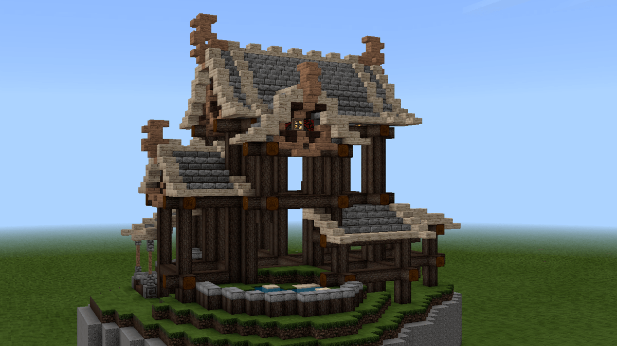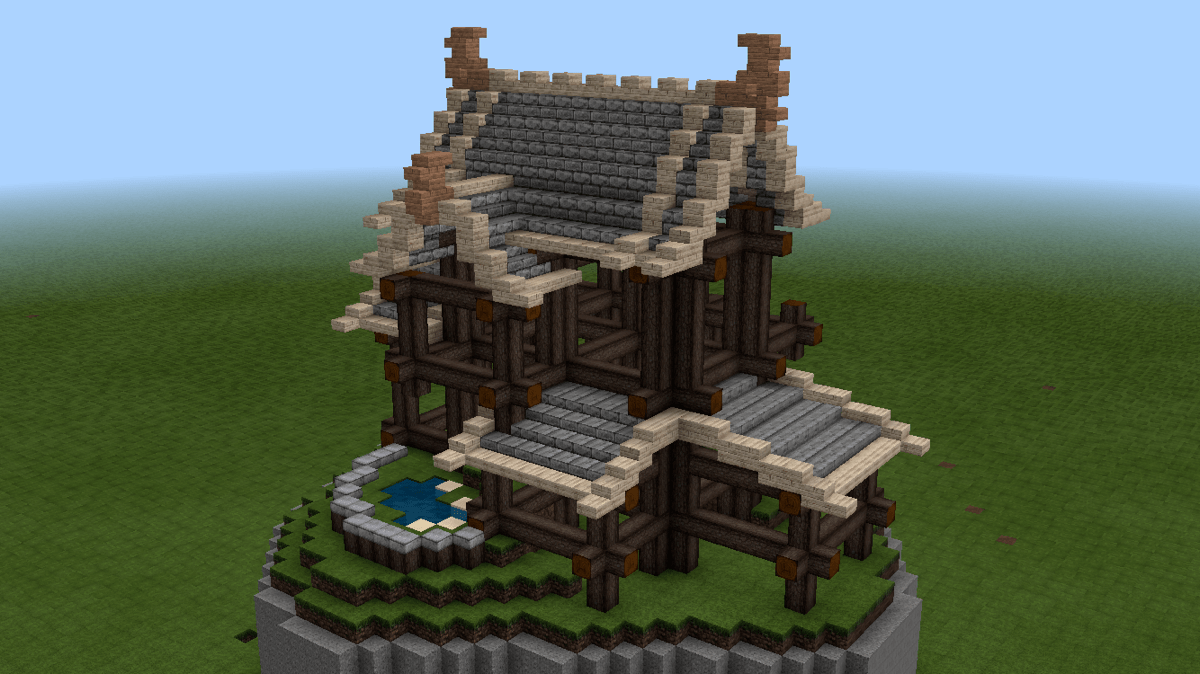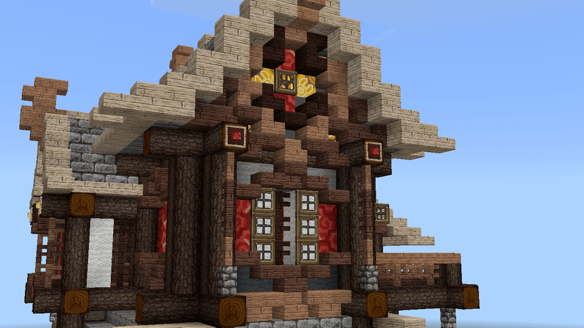 这时候,可以开始做山花了。山花的细节在后续的建造中修改了许多版,这个主要看个人的喜好与控制能力。