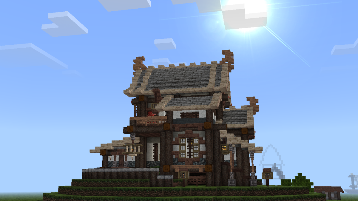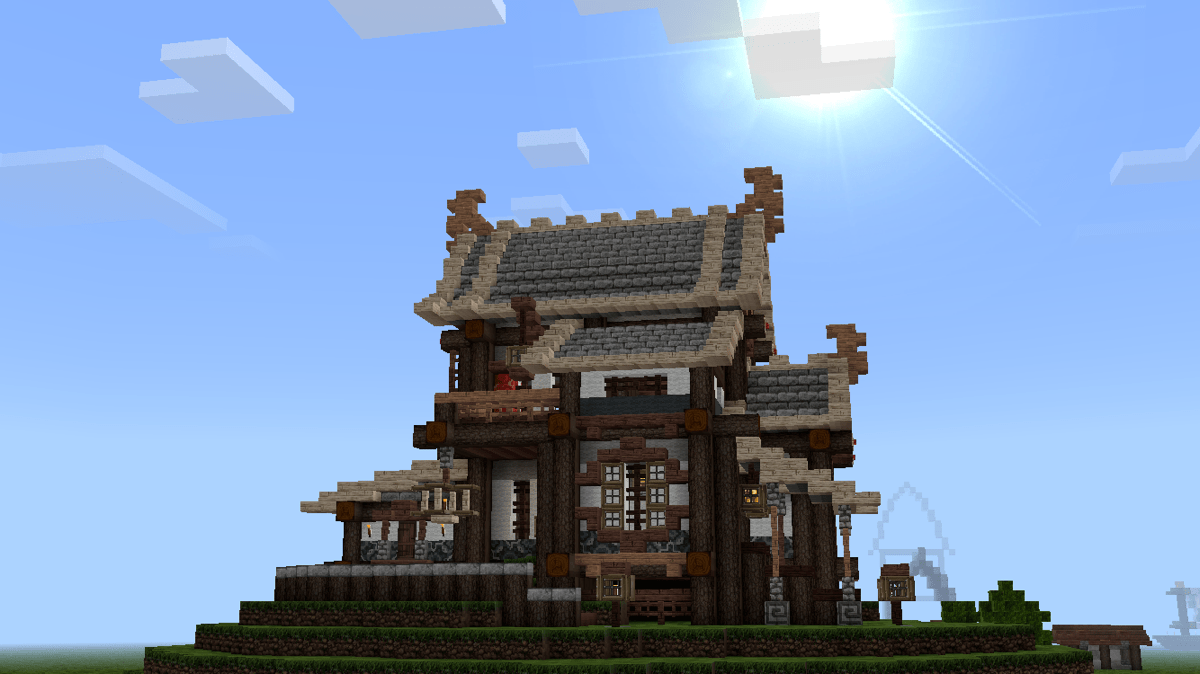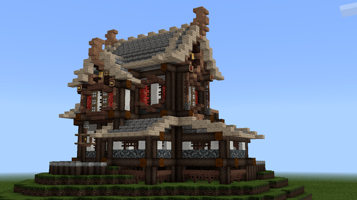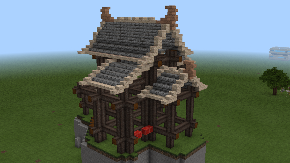 不久前V1.1.2更新时,pe版和pc版同步新增了几种彩色系列方块,其中的彩色带釉陶瓦很好看,是一种建筑装饰方块。我想尝试把这种方块融入到建筑和场景中,但在网上看到多数人都是把这种方块作为地面地砖装饰,或者大面积墙面纹饰,没有见到适合东方建筑的应用,所以打算自己尝试一下。