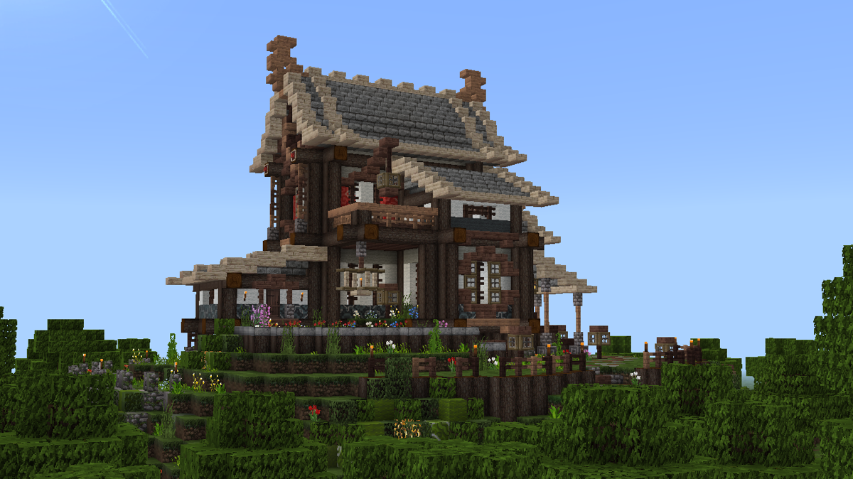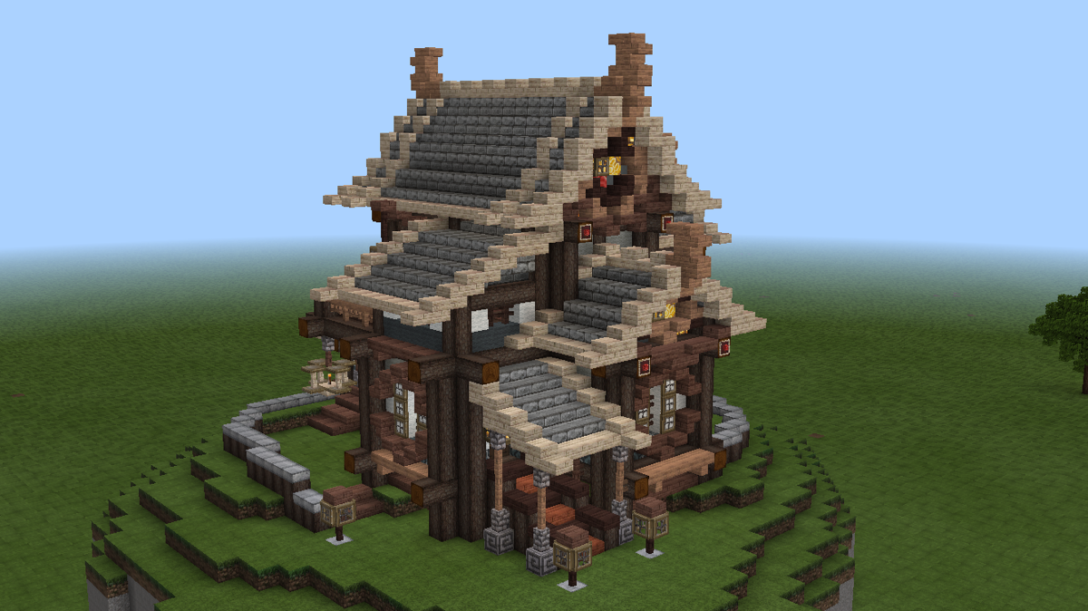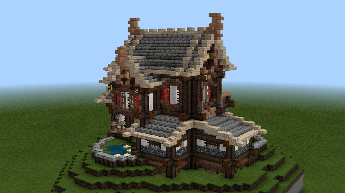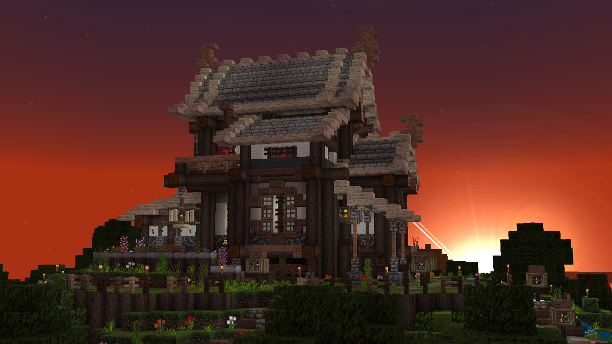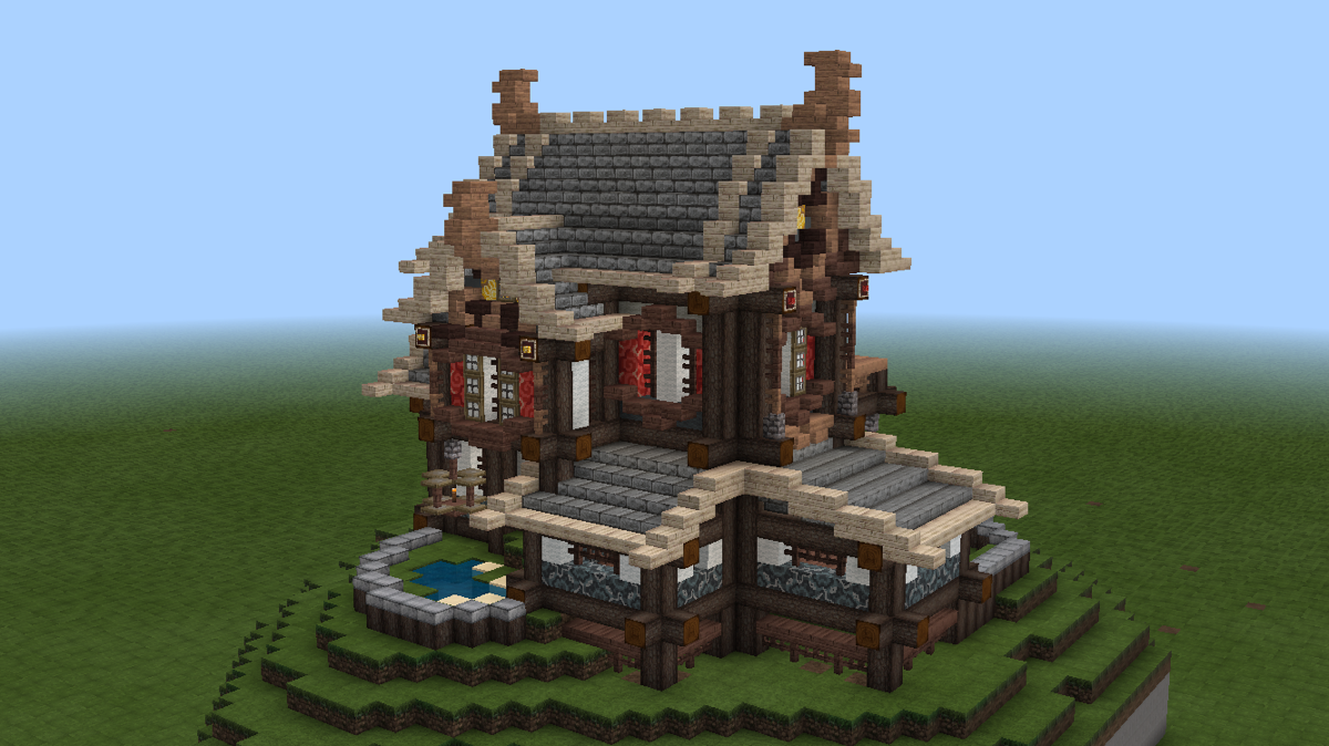 不久前V1.1.2更新时,pe版和pc版同步新增了几种彩色系列方块,其中的彩色带釉陶瓦很好看,是一种建筑装饰方块。我想尝试把这种方块融入到建筑和场景中,但在网上看到多数人都是把这种方块作为地面地砖装饰,或者大面积墙面纹饰,没有见到适合东方建筑的应用,所以打算自己尝试一下。
