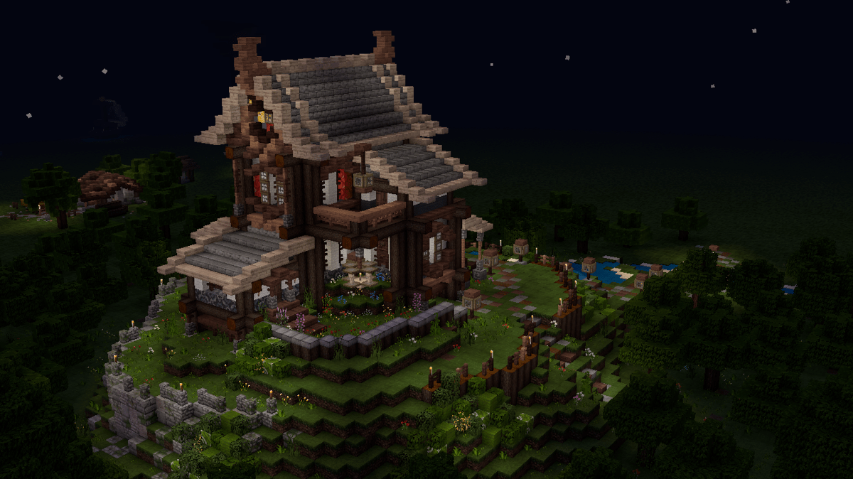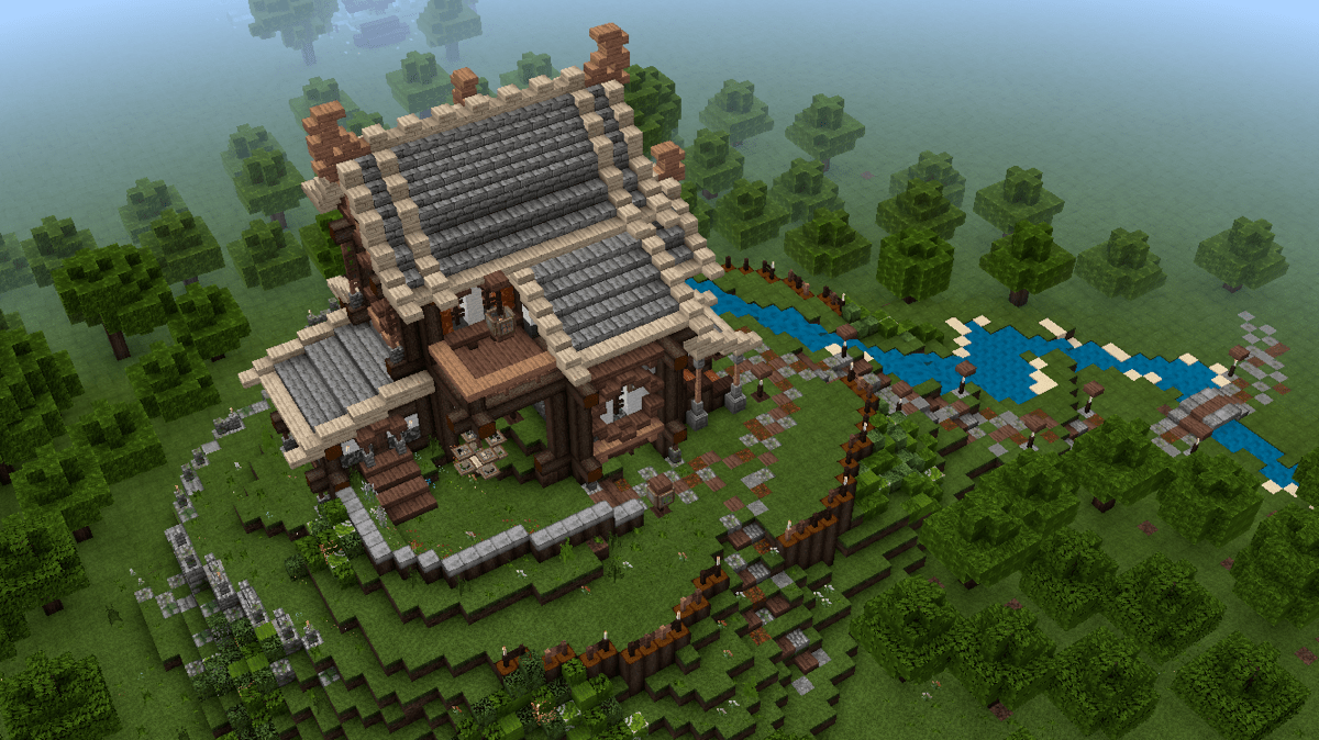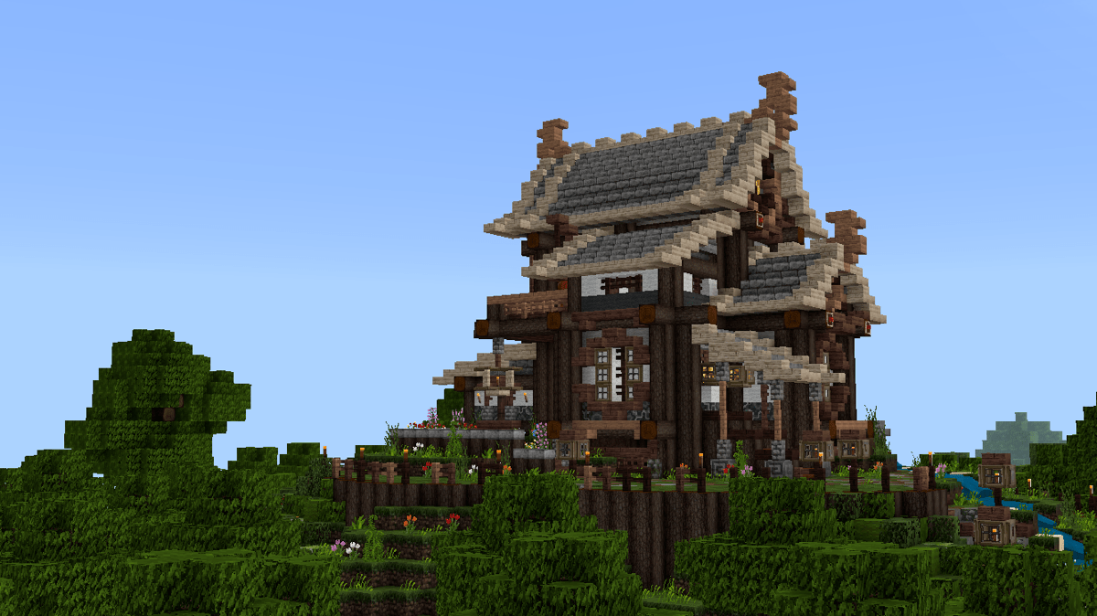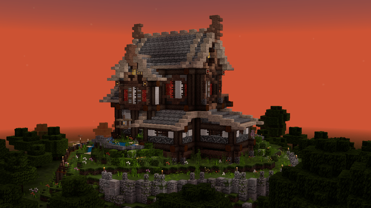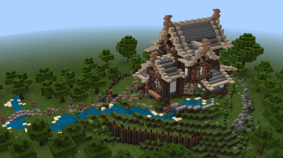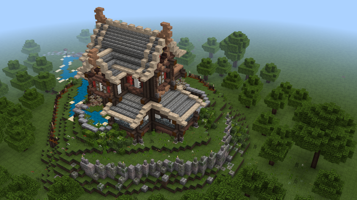 做到这一步,建筑主体已经基本完工了,剩下的就是一些花花草草和外围环境的塑造啦!