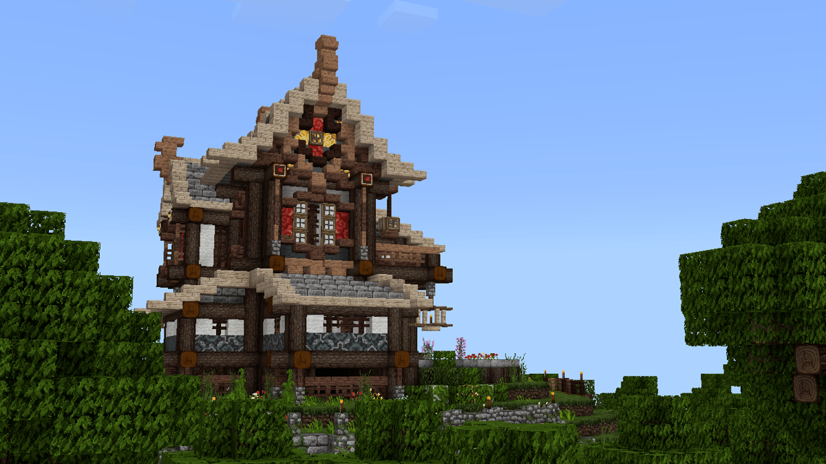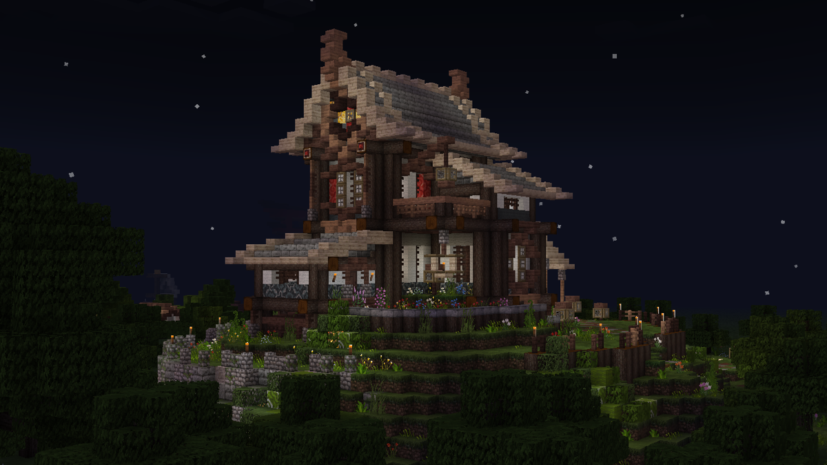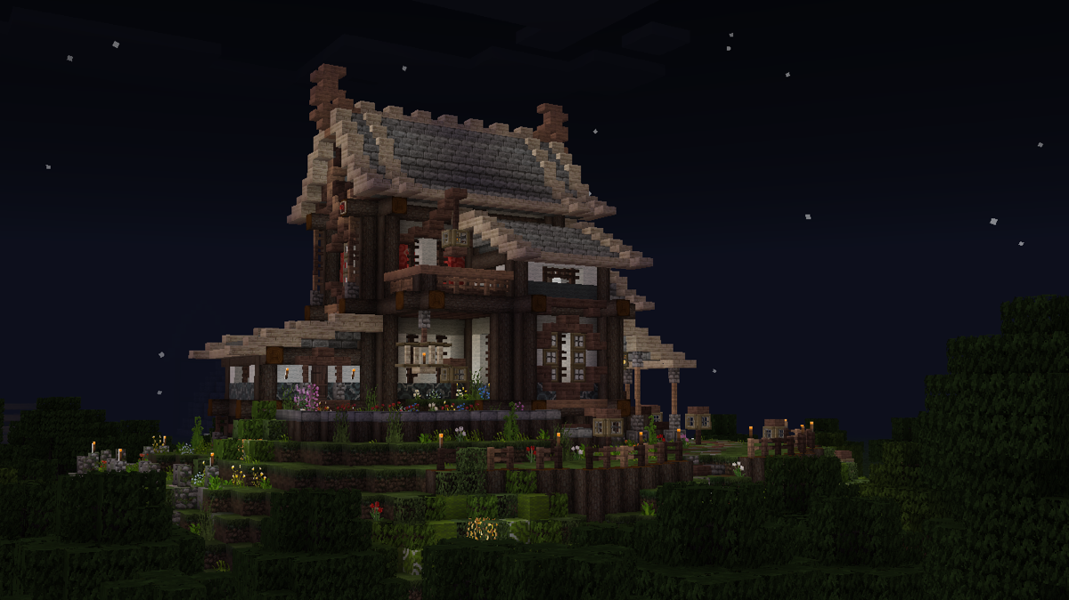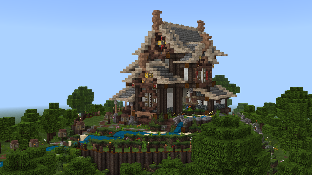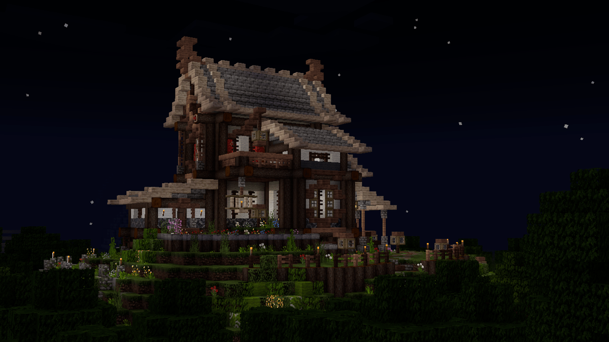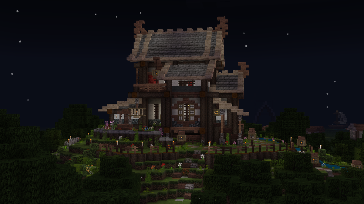 做到这一步,建筑主体已经基本完工了,剩下的就是一些花花草草和外围环境的塑造啦!