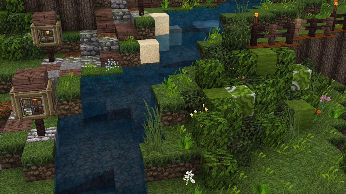# 灌木丛,使用了橡树叶和桦树叶两种树叶,与绿色羊毛和绿色带釉陶瓦,四种材质混合组成。
