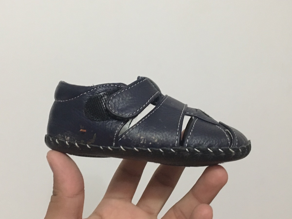 太太新买了两双鞋给小柒,一上脚,小家伙的反应就和之前完全不同:以前的鞋子爱穿不穿,没事就喜欢用手扯掉用脚蹬掉;新鞋一穿,一脸发现新大陆的表情,一边笑眯眯地指着鞋子,一边高兴地原地踏步。之前出门前有时会很抗拒穿鞋子,现在自己指着鞋子表示要穿。