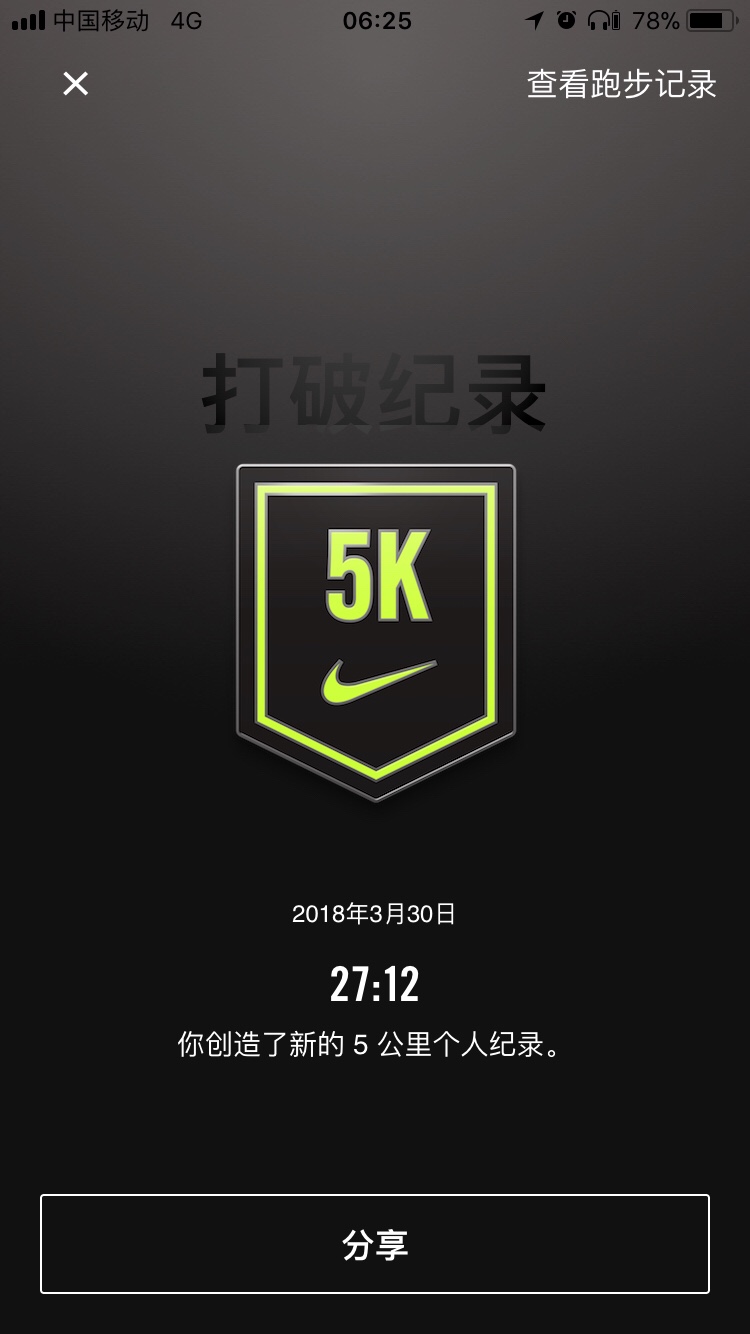 我越起越早,从六点半起床,墨迹到七点开始跑,慢慢地跑,到后来五点半起来,跑出了新的记录,一看时间,还没到六点半。
