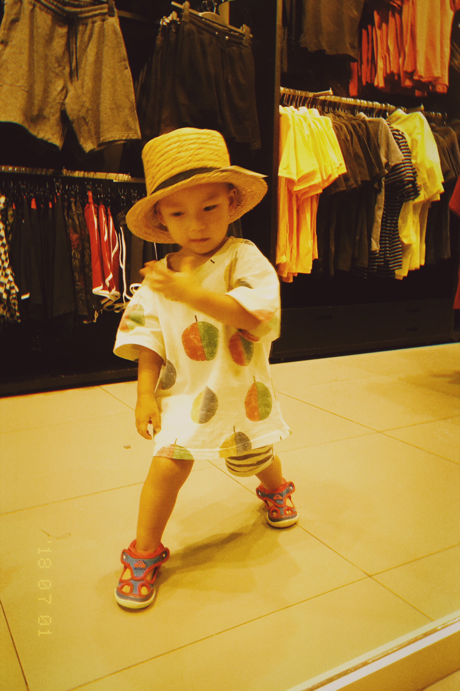幸好转移到H&M后,卖场内的大镜子又给他提供了玩耍的舞台。