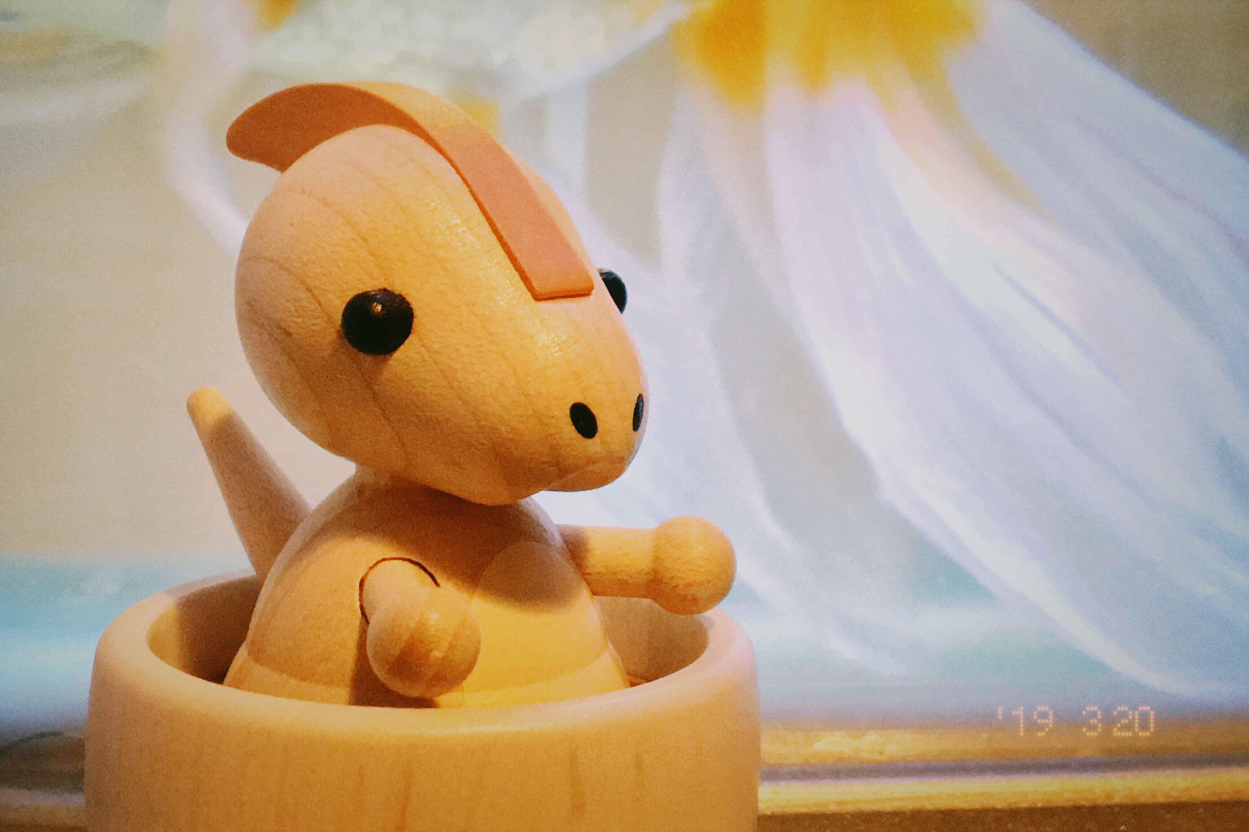 礼物是之前在木育森林看到的一只恐龙不倒翁摆件。当时她还和我讨论,哪个好看,哪个适合摆在哪里,实用不实用这类问题,我当时还说「情愿放些好看不实用的纯摆件」来着,但当时偏偏没想到她是在套我话,给我准备礼物。真笨啊!这件小摆件还是今天下午她从托班接了小柒之后,一起去海上世界买了再赶回来的,是她和儿子一起挑给我的「小玩具」。