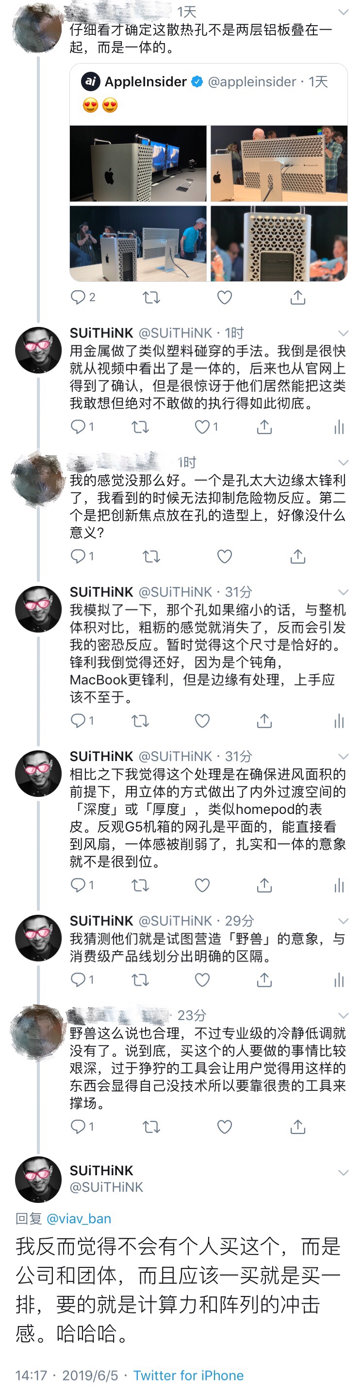 前段时间Apple发布的MAC Pro 2019在网上引起大家很多讨论,我也陆陆续续发表了一些关于新MAC的工业设计的看法,现在做个简单的整理汇总,方便自己以后回头找。