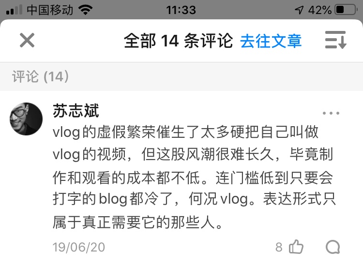 突然看回这段话,感慨一下,互联网人真的很热衷于「定义」。至少以我短短三十几年的人生来看,vlog 的历史至少应该往前推到1990s。