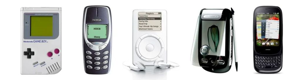 早年的阴极射线管电视机体积大、分量沉,但显示面积只能占整体的很一小部分。初代 iMac 那令人印象深刻的多彩透明外壳下,也是这样一个笨重的显示装置。直到 LCD 屏幕可量产,才开始陆续出现诸如 Game Boy、NOKIA 3310、iPod 等经典产品。然而回看这些产品时会发现,它们的屏幕都只有今天 Apple Watch 那么丁点大,从黑白到彩色又经历好些年。这是受到当时 LCD 制作工艺的限制。