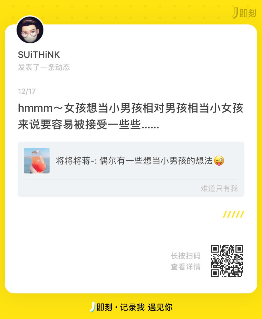 在客观上男权主导的环境里,处于弱势一方的女性更容易被允许有更多元化的呈现,而男性则往往被规训成一个模版,不符合那套标准的甚至会被划出男性行列。这是一种隐蔽但深刻的暴力。