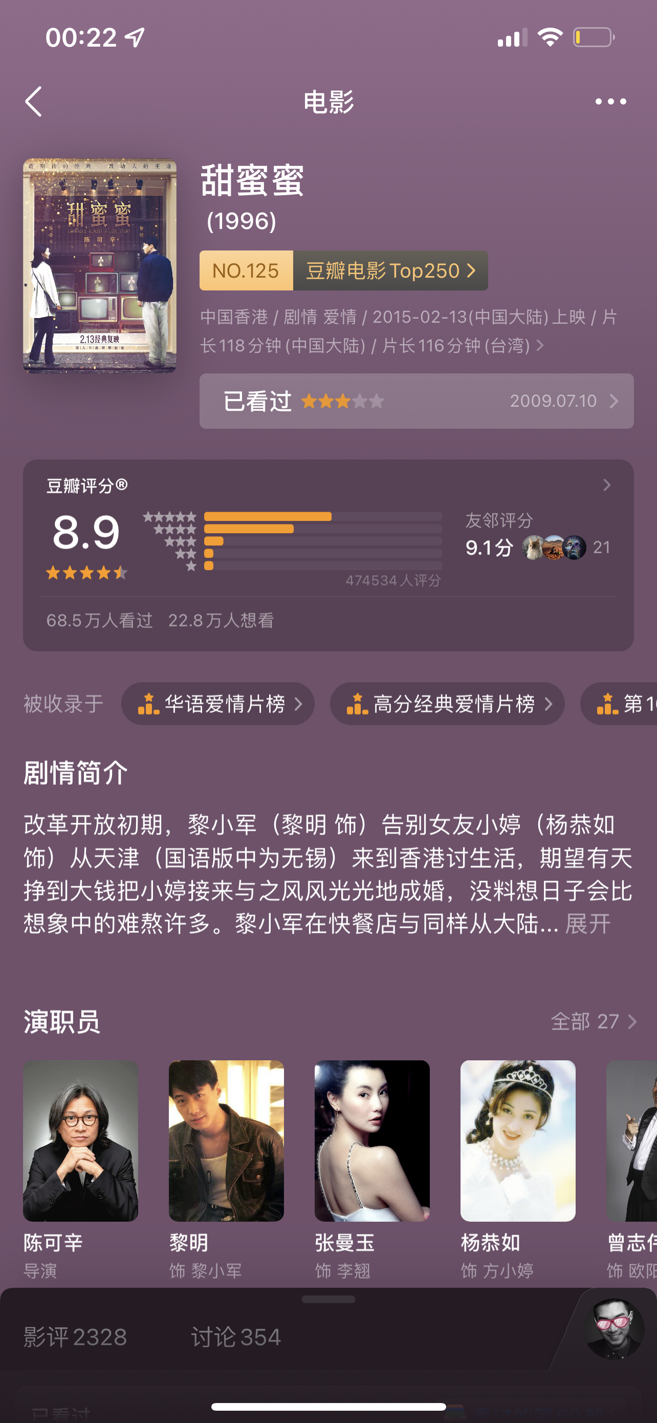 年轻时不懂,觉得冗长无聊,三十五岁和太太再来一起看,才晓得那些细腻、苦楚、无奈,才从半生的苦里尝出绝处中淡雅的甜蜜。